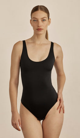 בגד גוף עם מחשוף עגול עמוק ומחמיא. עשוי מבד מחטב עם בטנת מש נסתרת שמחליקה את הקווים ומעניקה יציבות. רצועה פנימית נסתרת שומרת על מראה טבעי ללא חזייה, והגזרה התחתונה בחיתוך חוטיני משתלבת בצורה מושלמת מתחת לכל פריט לבוש.