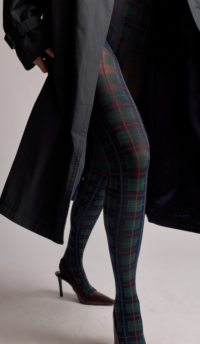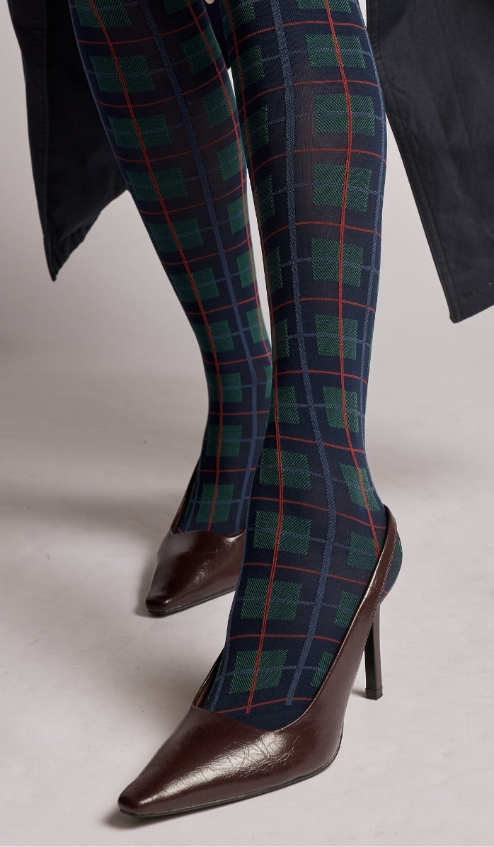 גרביון נשים בדוגמת משבצות בצבעי חורף חמימים