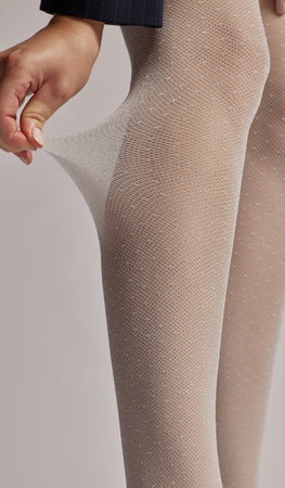 גרביון נשים בטקסטורת מיקרו רשת עם דוגמת נקודות עדינה וסיב מטאלי