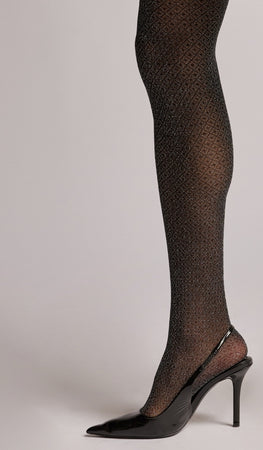 גרביון נשים בדוגמת יהלומים קטנים ונקודות בשילוב סיב מטאלי