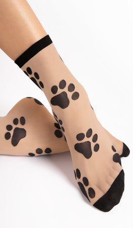 גרבי ניילון לבנים שקופים עם הדפס כפות רגליים מתקתק