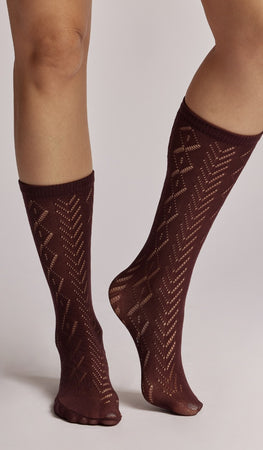 גרבי נשים בסריגת פוינטל עדינה עם דוגמת יהלומים אוורירית