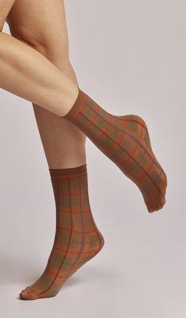גרבי נשים בדוגמת משבצות בצבעי חורף חמימים