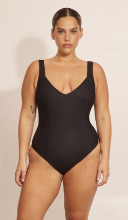 בגד ים בגזרת וי נשית ומדויקת עם תיפורים מחטבים, עשוי בד איכותי ומחטב עם בטנת מש תומכת לעיצוב חלק ומחמיא.