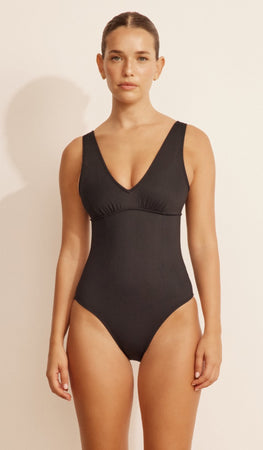 בגד ים שלם בגזרת וי מחמיאה. עשוי בד בטקסטורת פיקה ובטנת מֶש פנימית לחיטוב ועיצוב. המחשוף הקדמי בנוי בצורת V עם תפר תומך מתחת לחזה, ורצועות עבות שמעניקות יציבות ונוחות.